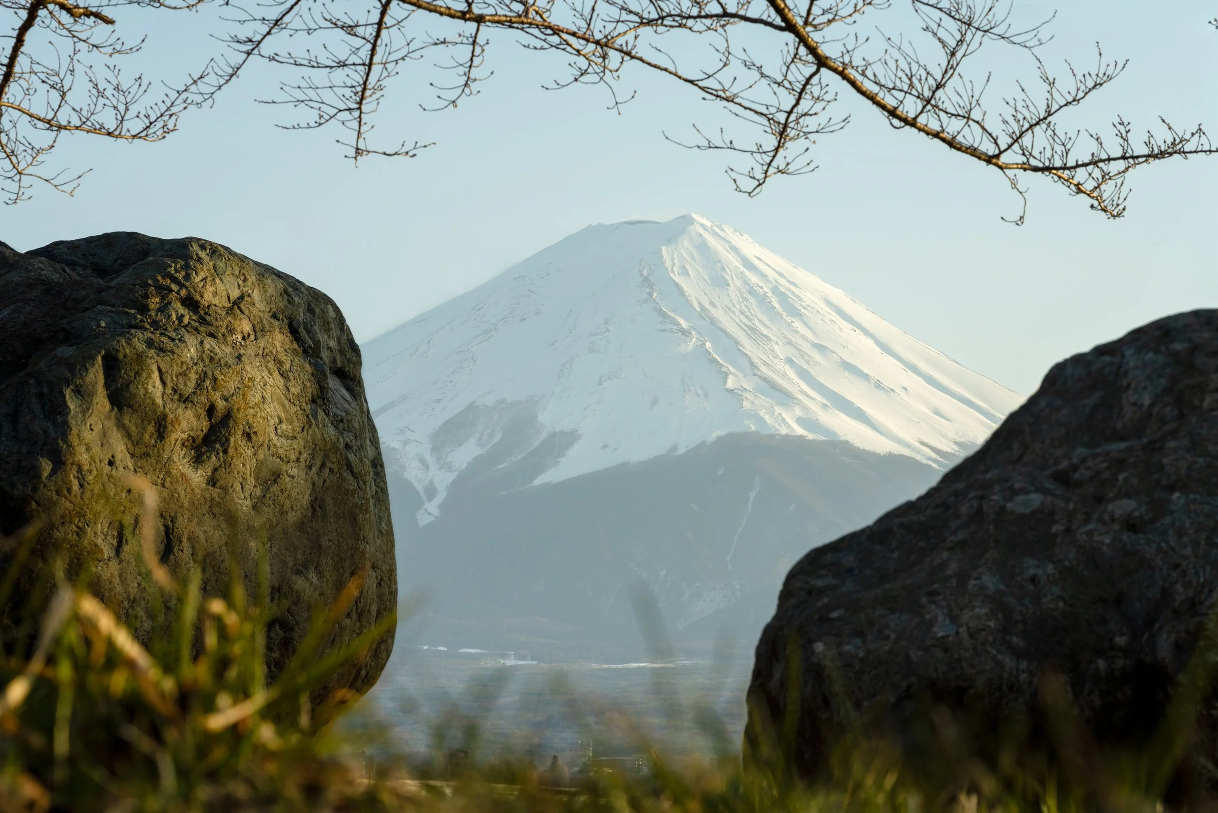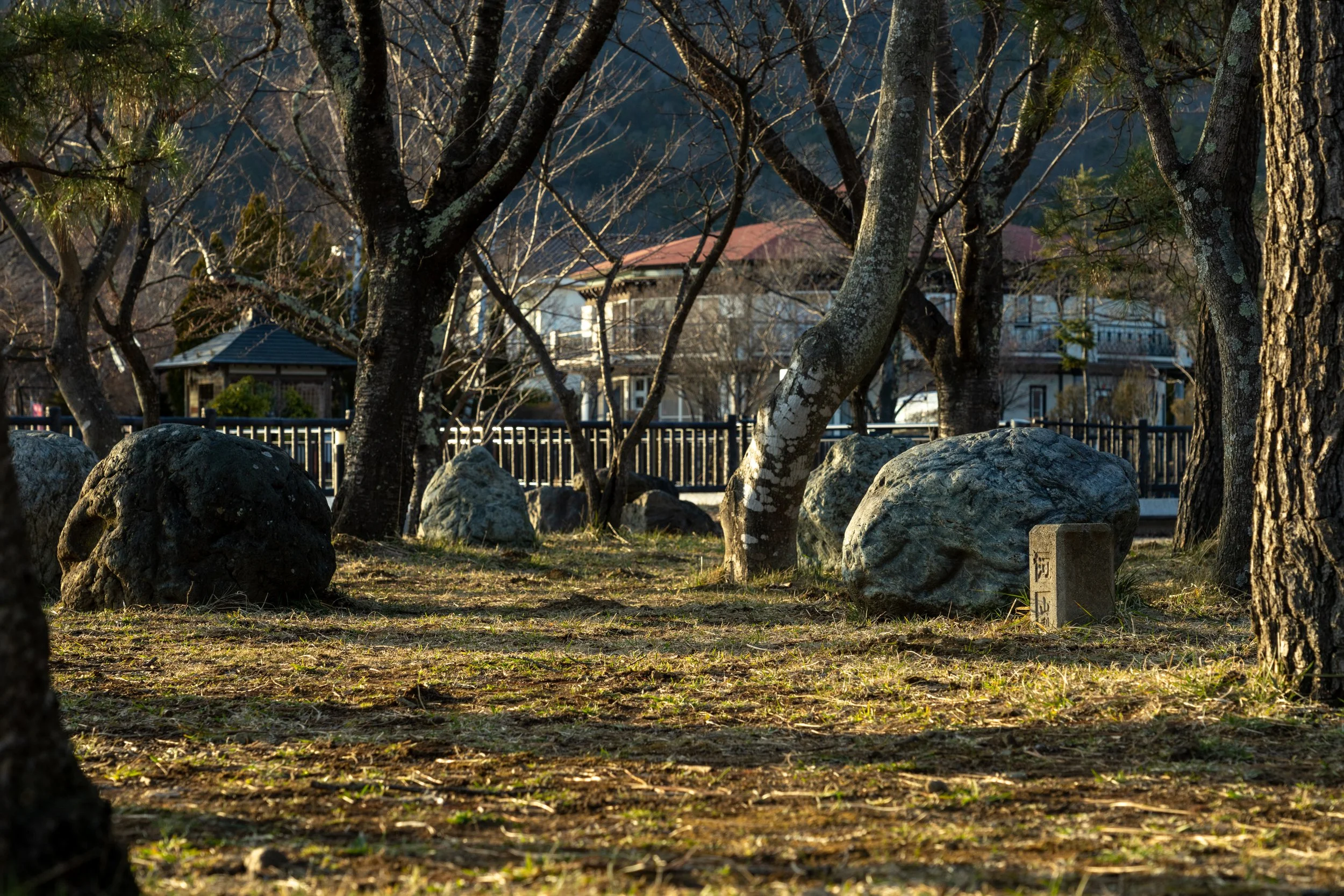 My absolute favourite spot was a grove of trees along the foreshore near the Kawaguchi Museum of Art. On the map it's the aqua dot just to the left of the yellow star that says (Kanjukuya). During cherry blossom season this spot would be extra extra amazing and probably packed. In late March, there were no blooms, but the sun sets to the west of this spot sending beautiful light streaming across - perfect to light up the mountain as well as people riding their bikes or walking past.