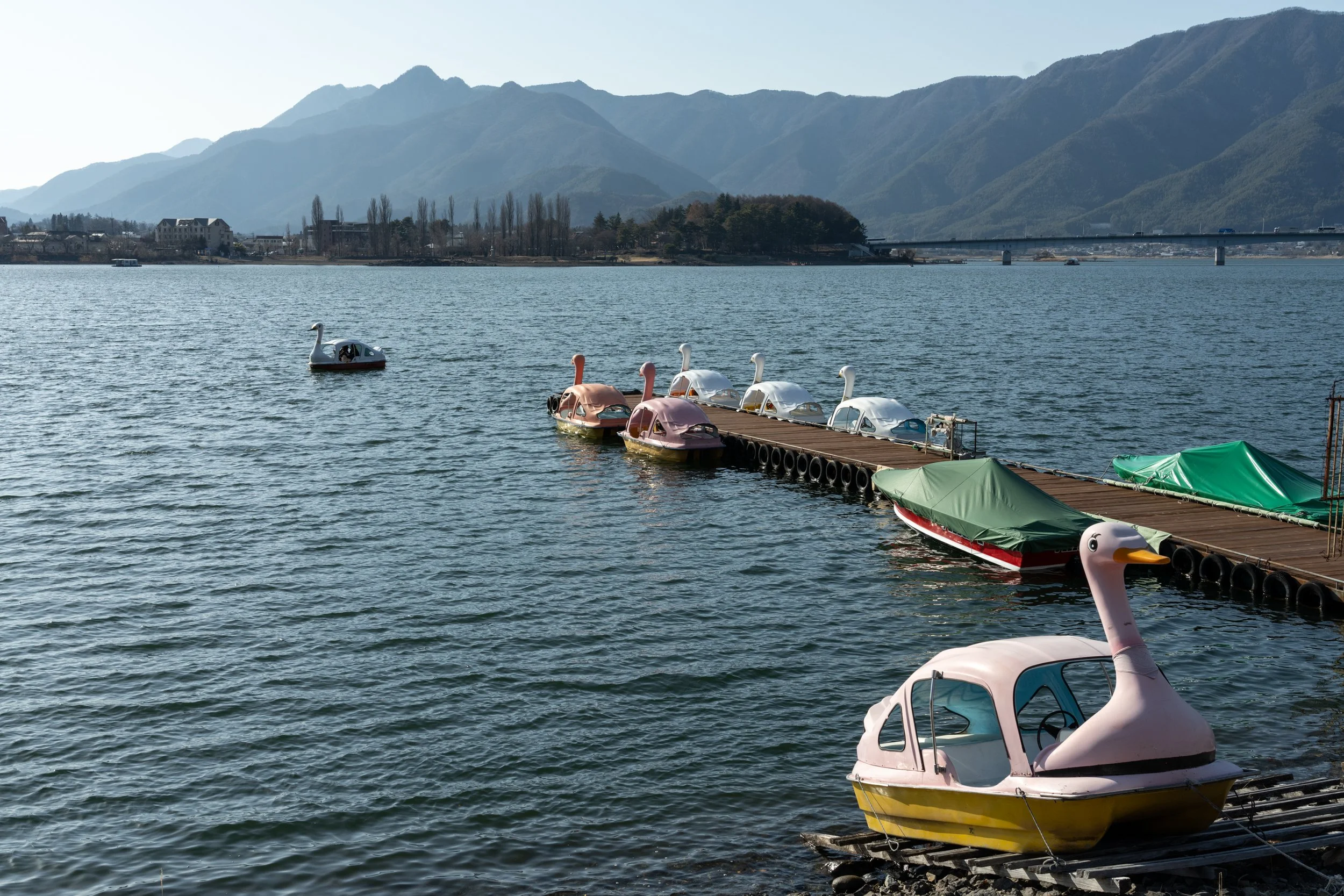 The ride around the lake was really nice. After a hectic few days in Tokyo, I had an entire afternoon to take my time cycling around, looking for interesting spots to shoot. I found that the first third of the route (anti-clockwise) was the most interesting as you are looking across the lake back towards Fuji. The rest was nice to ride around and look at the scenery and life around the lake, but wasn't super dramatic. As I was only there for a day and a half, my mind was firmly in the space of looking for images with Mt Fuji.